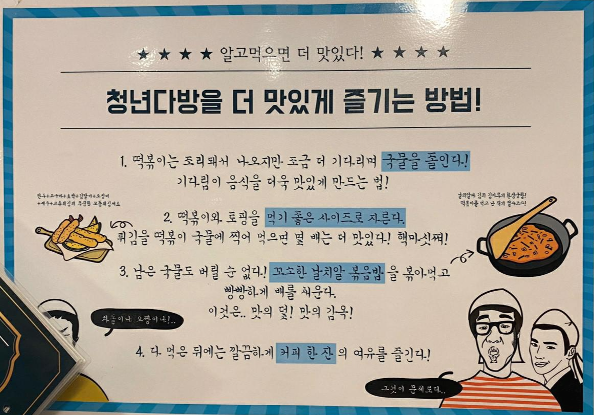 청년 다방을 맛있게 먹는 방법이 나옵니다. 짧게 정리해보면!