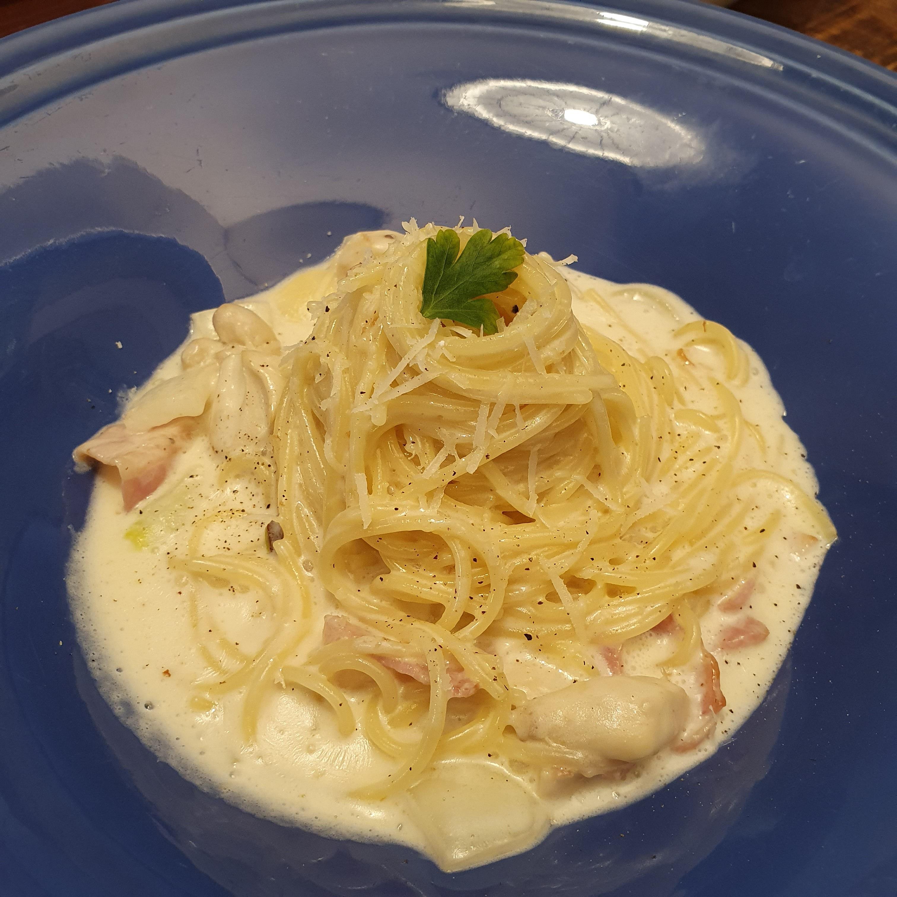 오늘 주문한 음식은 까르보나라와 크림 리소토입니다. 파스타 집에 처음 가보면 까르보나라 맛이 그 집의 인상을 좌우하는 듯합니다. 그래서 저는 처음 가보면 까르보나라가 맛있으면 재방문하고, 아니면 거르는 편입니다.